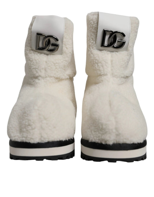 Dolce & Gabbana White Plush Logo Padded Mid Calf Boots Shoes