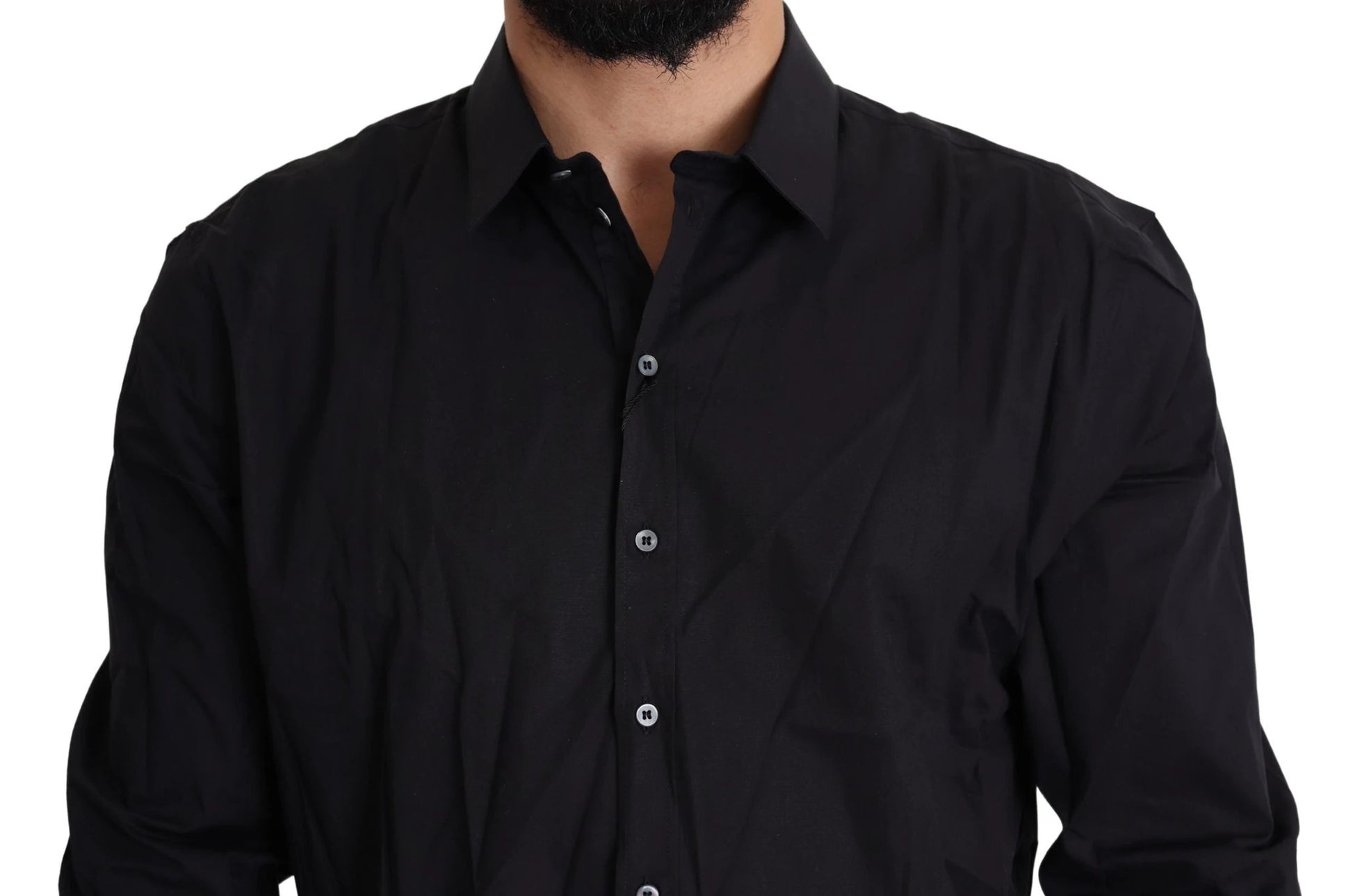 Absolutely stunning, 100% Authentic, brand new with tags Dolce & Gabbana SICILIA black dress shirt made of fine soft cotton stretch. Features a spread collar and one-button barrel cuffs.