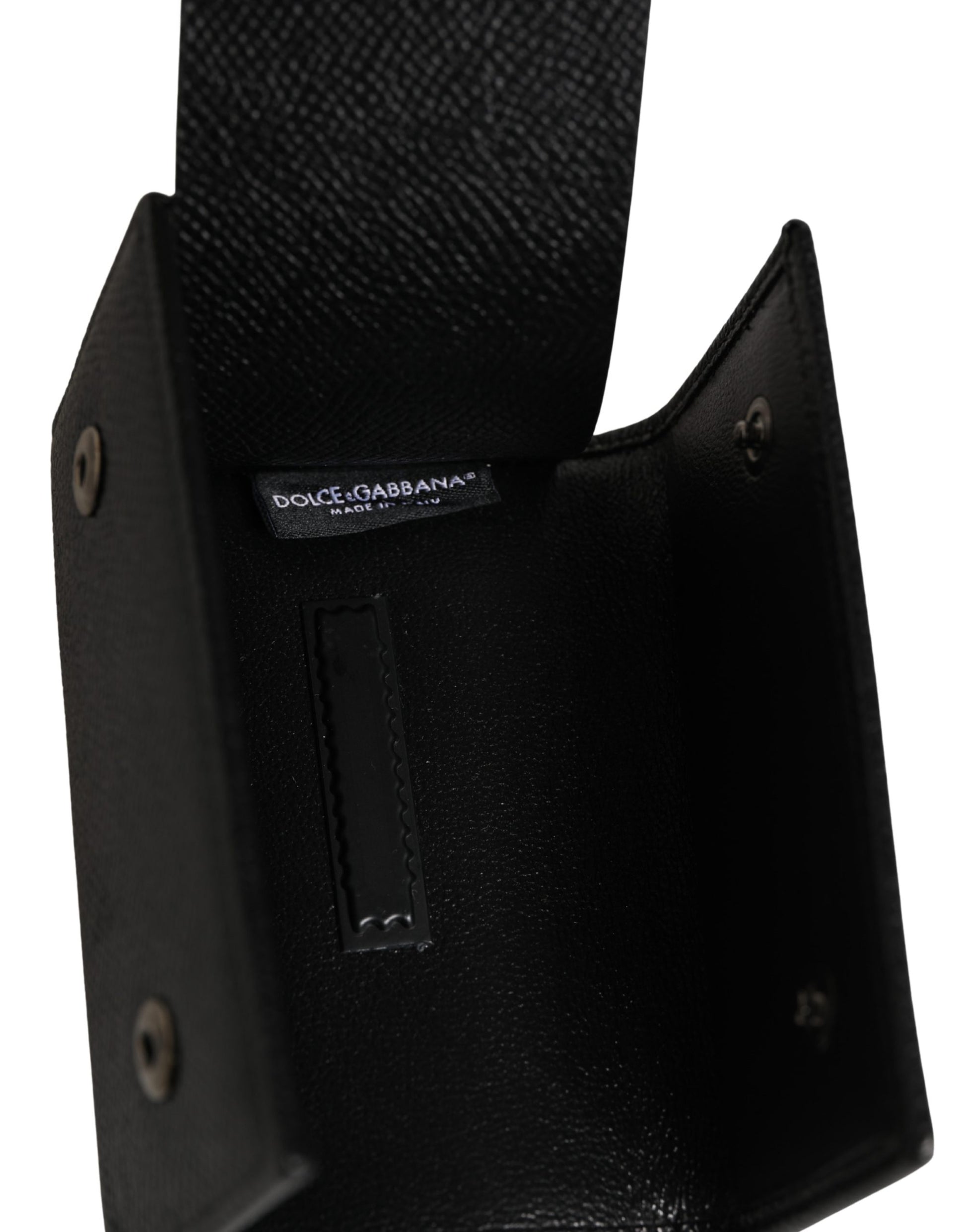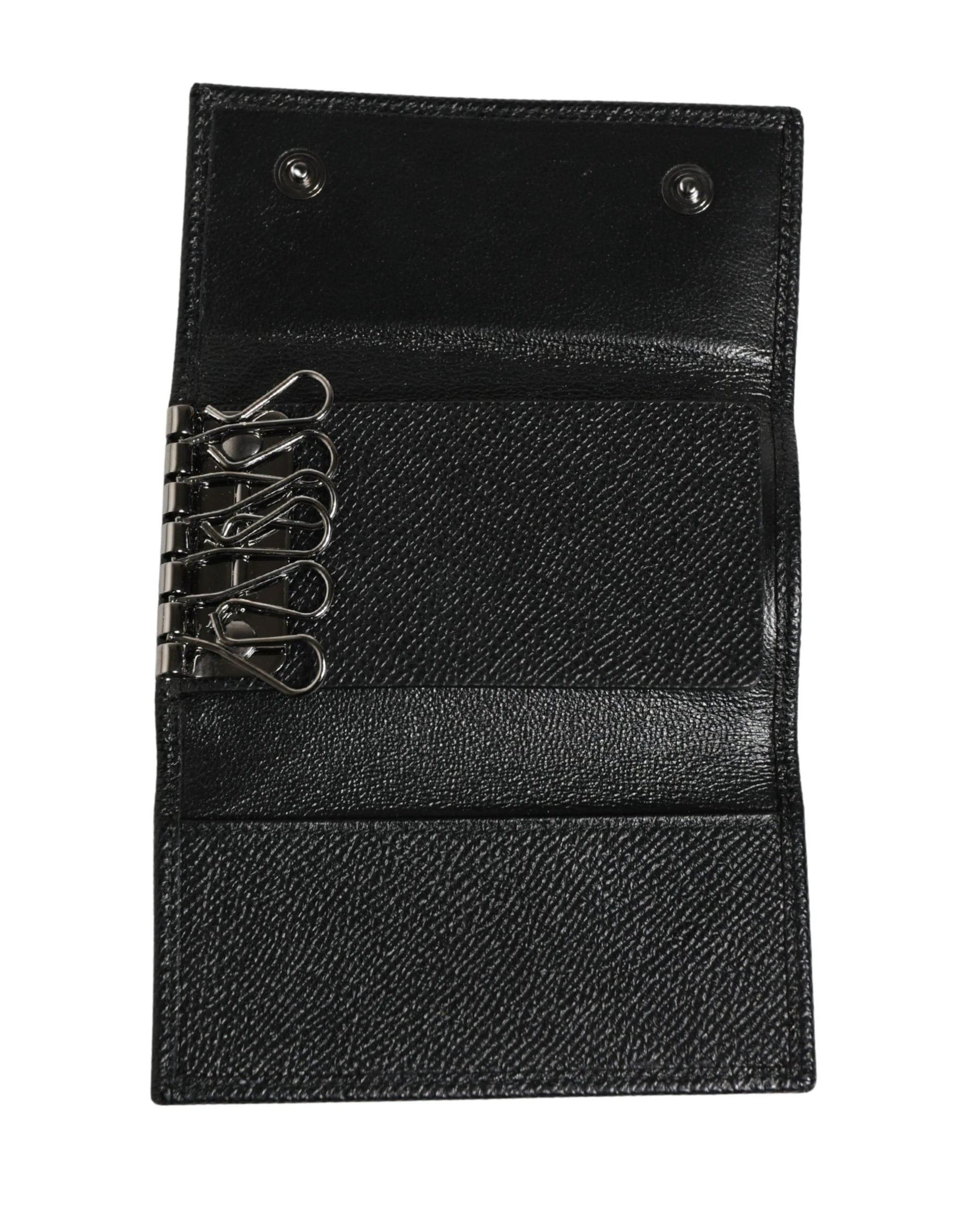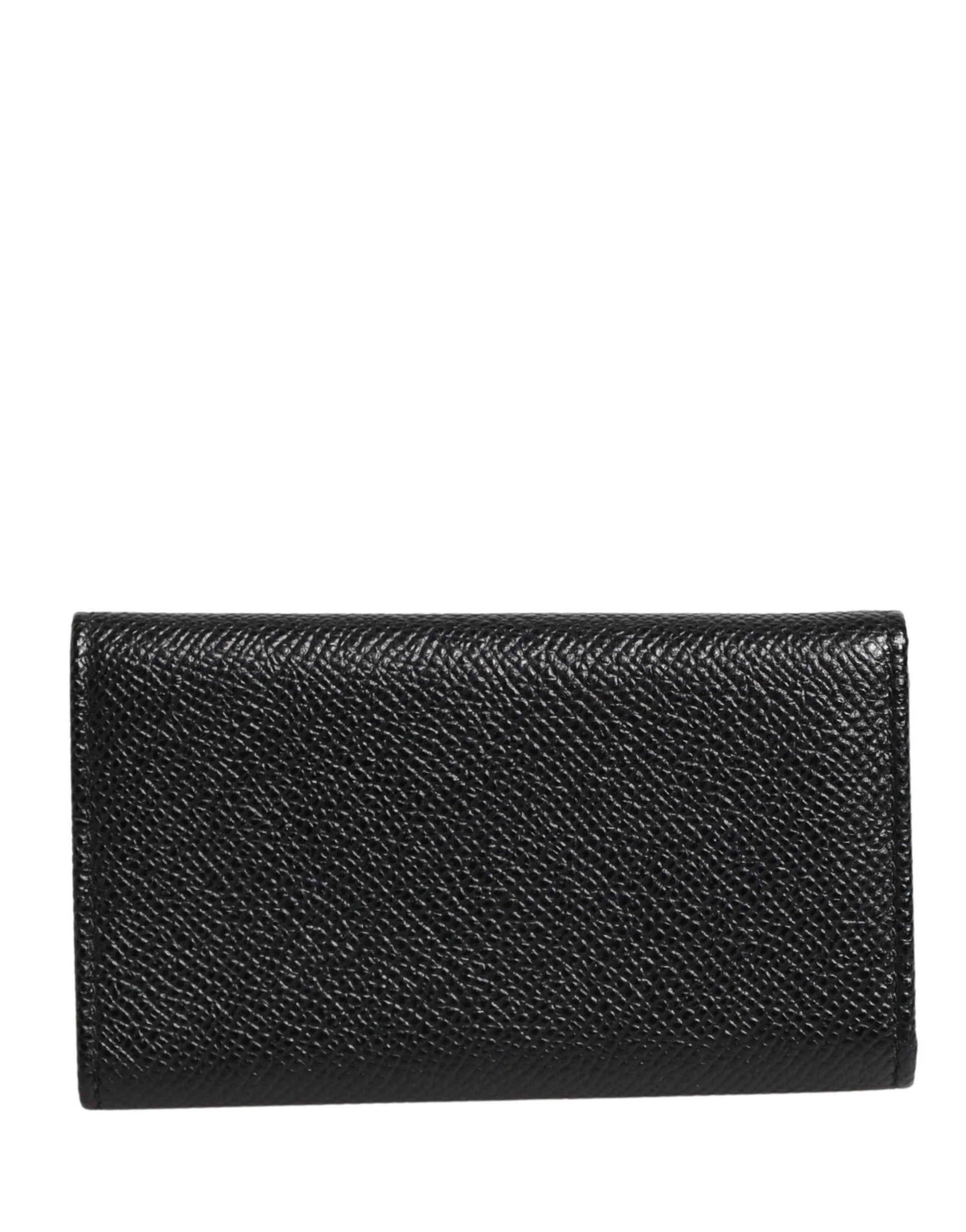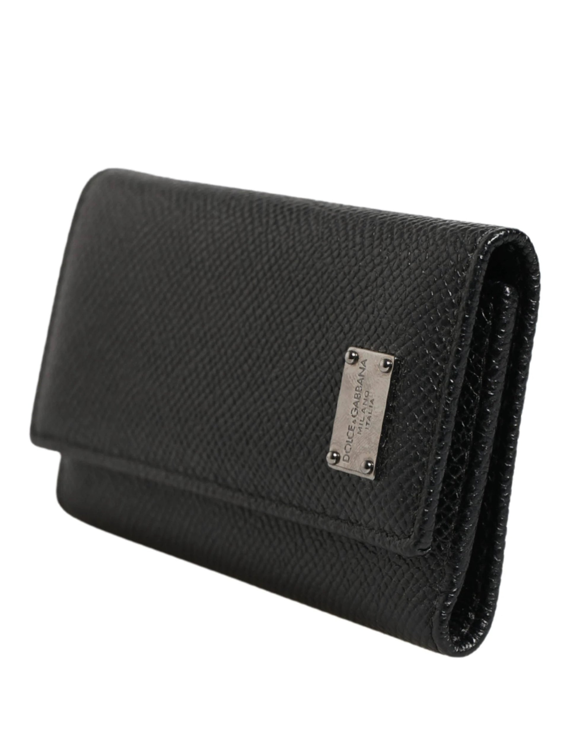 Dolce & Gabbana Black Leather Silver Metal Logo Plaque Trifold Keyring