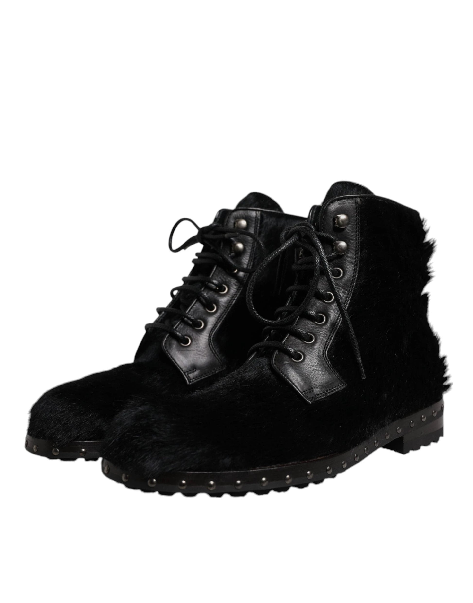 Absolutely stunning, 100% Authentic, brand new with tags Dolce & Gabbana lace up boots featuring upper made of black pony skin leather and sole in super light natural rubber.