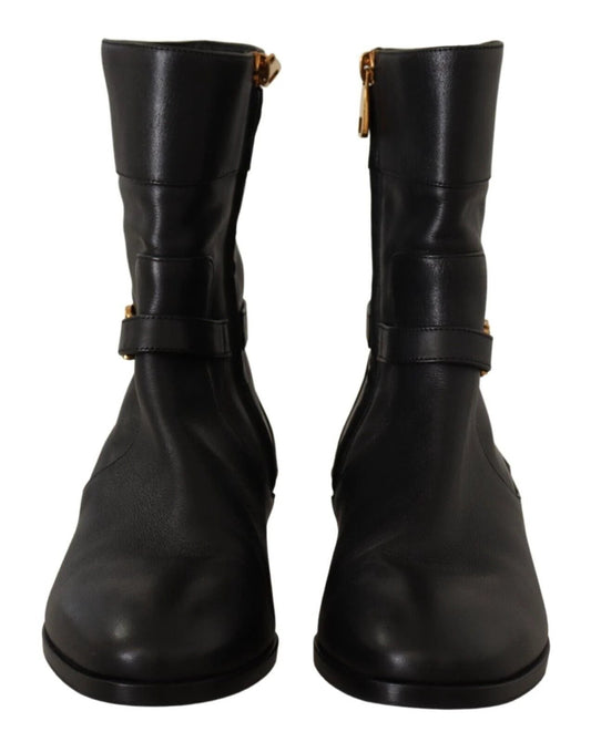 Dolce & Gabbana Black Gray Leather Mid Calf Boots Shoes