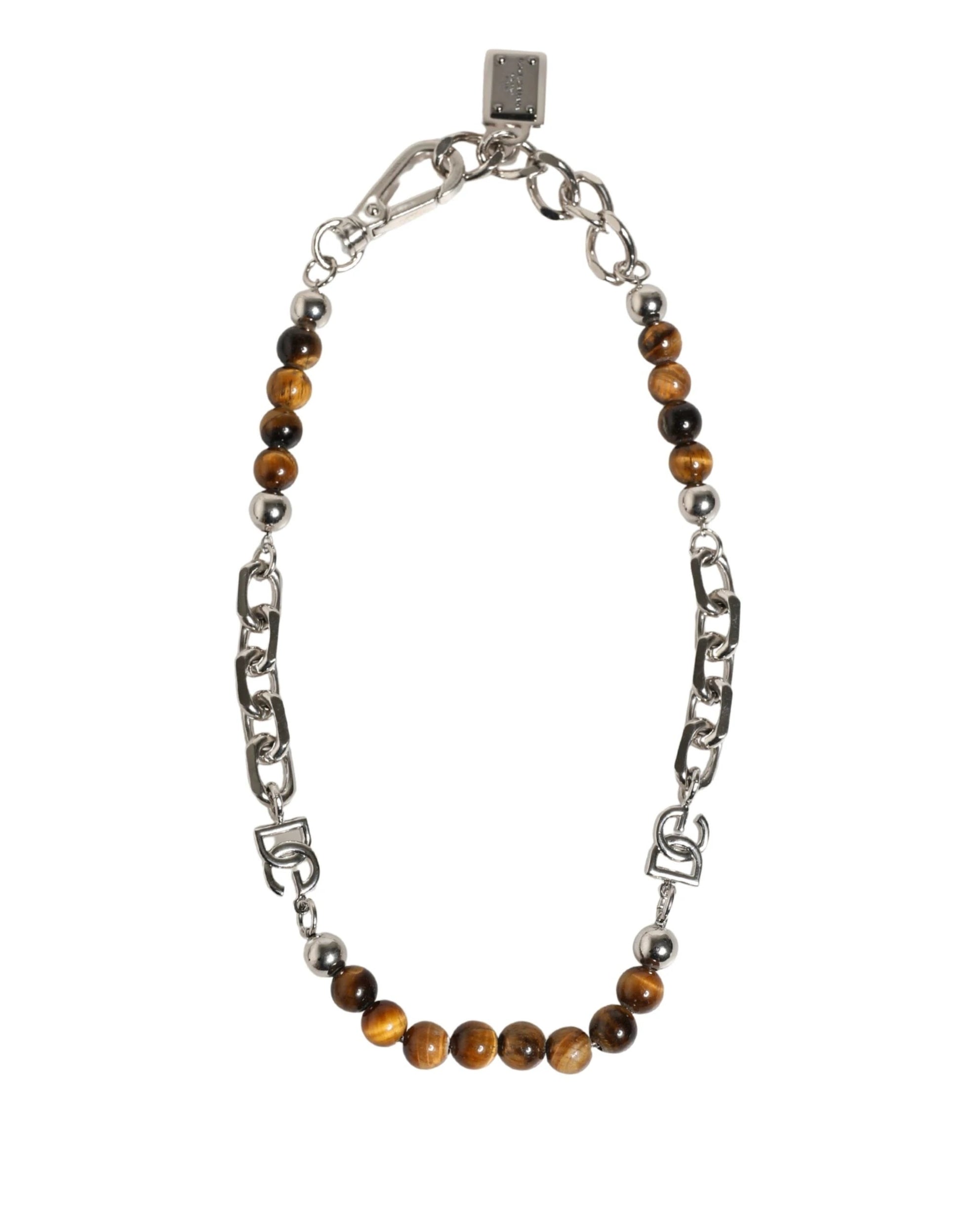 Gorgeous brand new, 100% Authentic Dolce & Gabbana necklace features a silver-tone brass chain accented with beaded details and the signature DG logo. A refined statement accessory that adds a contemporary touch of Italian luxury to any outfit.