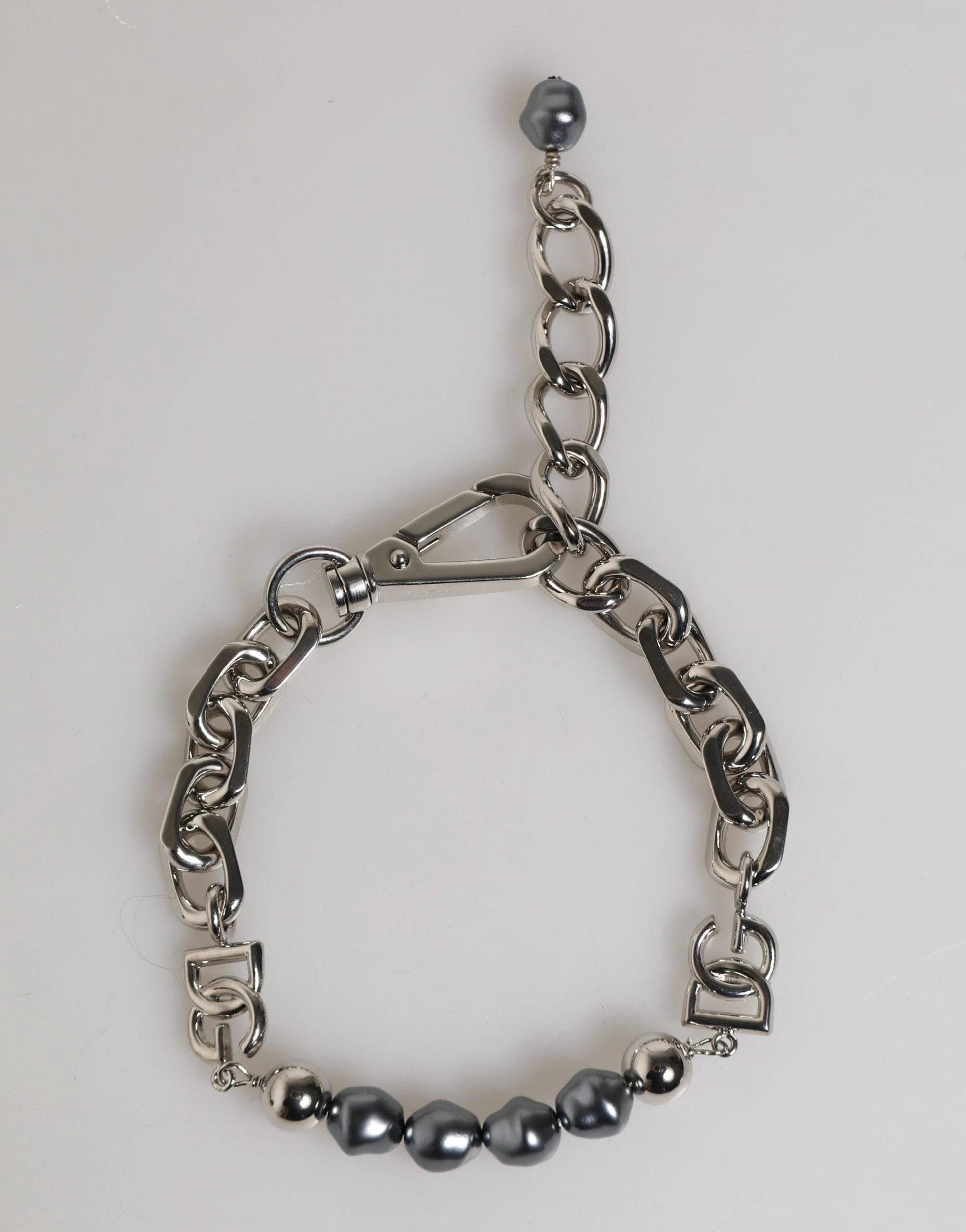 Dolce & Gabbana Silver Tone Chain Lobster Clasp Logo Gray Pearls Bracelet