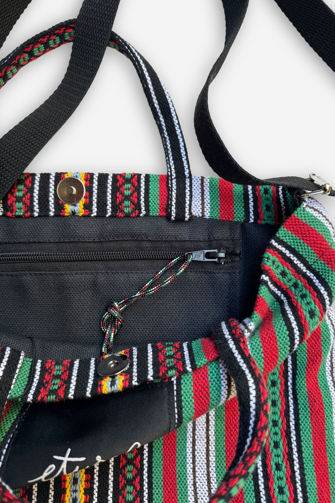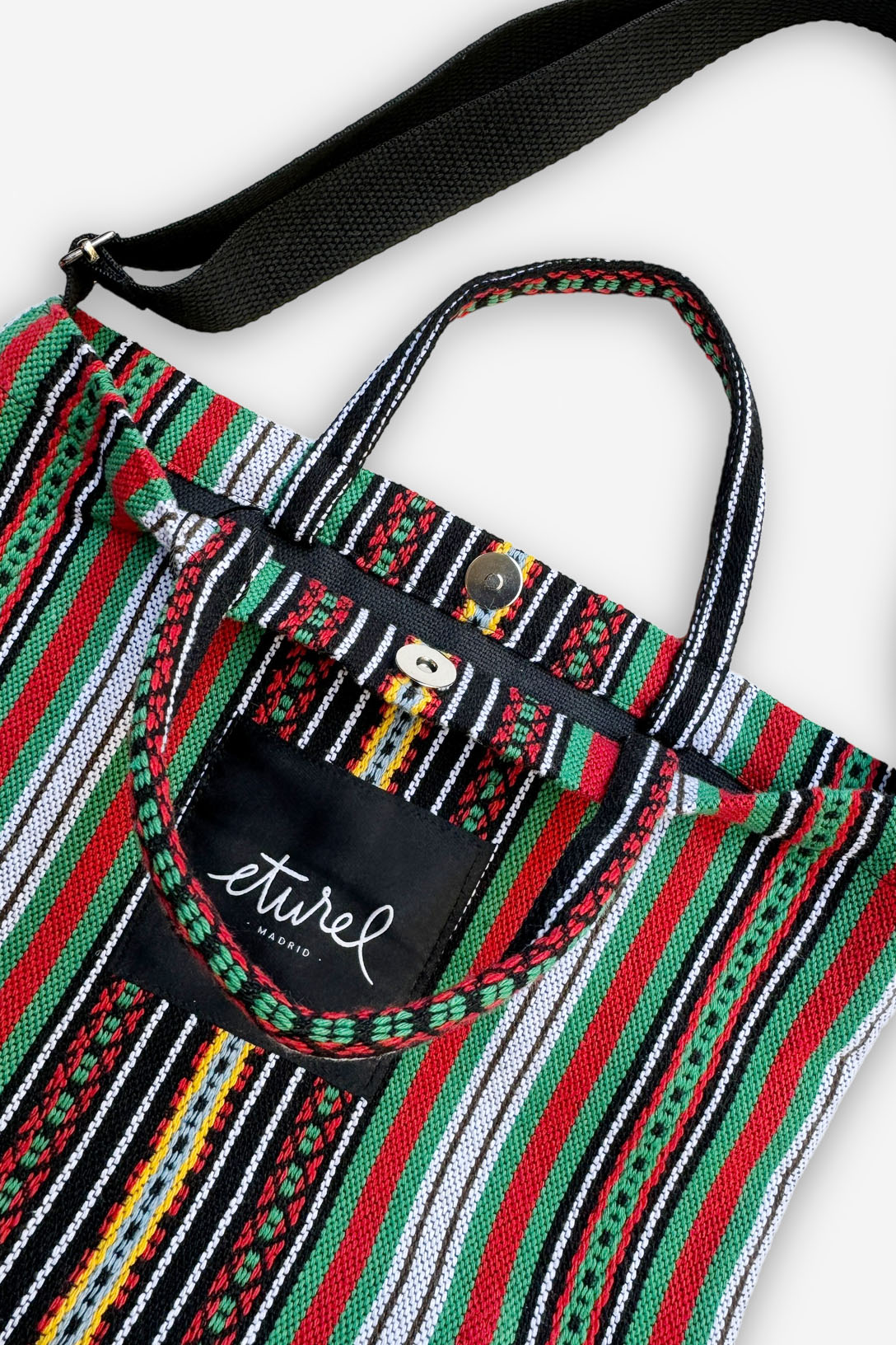 ¡Lleva la belleza de los aires del sur contigo con nuestro bolso cruzado de tejido alpujarreño con cierre! Inspirado en los colores de Granada, este bolso es cómodo, de buena calidad y forrado para proteger tus pertenencias. ¡Haz una declaración de estilo con este bolso de diseño único!
