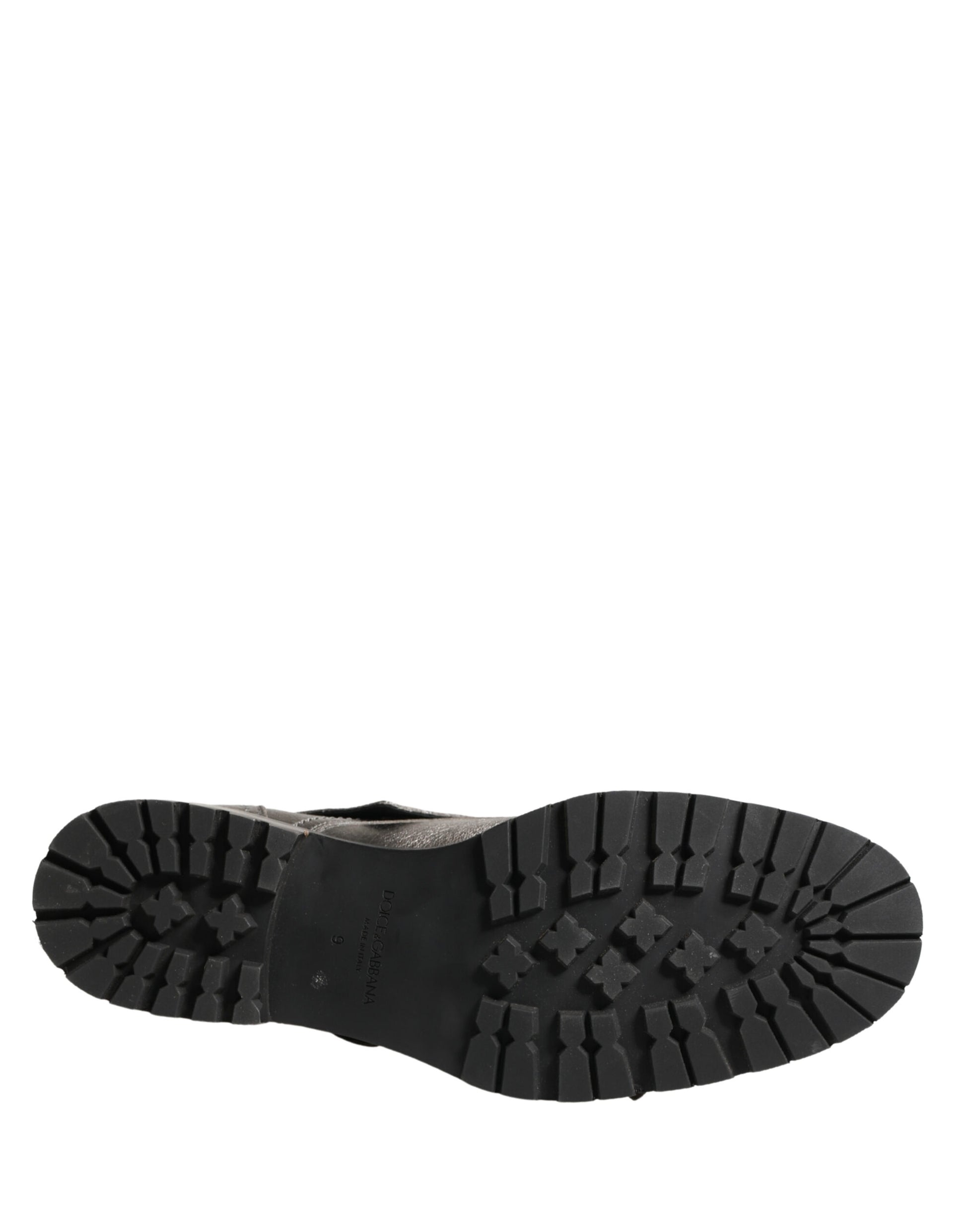 Dolce & Gabbana Metallic Silver Leather Buckle Ankle Boots Shoes