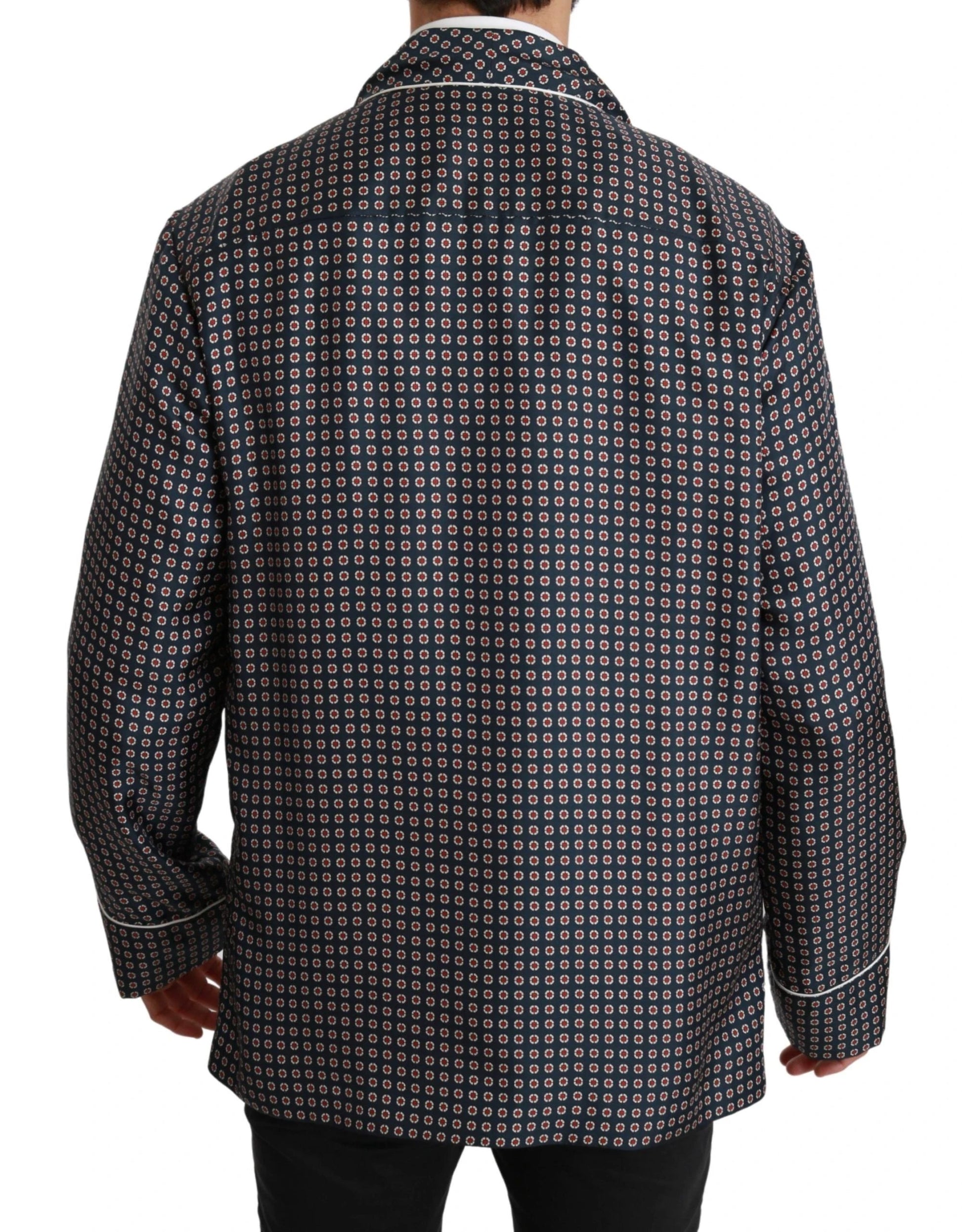 Dolce & Gabbana Navy Blue Patterned Double Breasted Coat Jacket