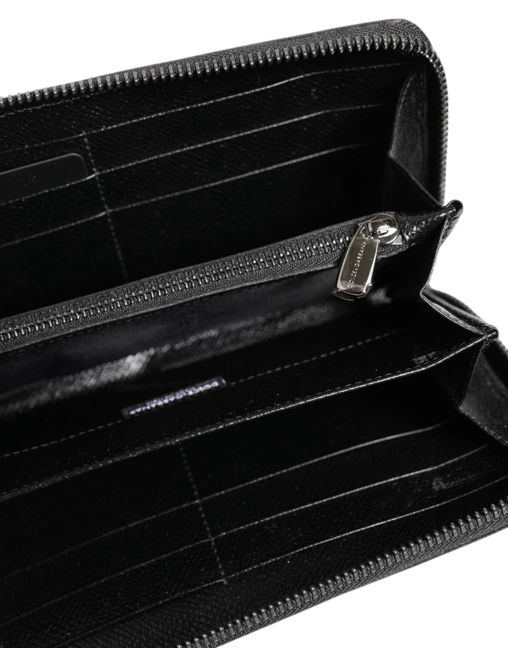 Dolce & Gabbana Black Gray Leopard Leather Zip Around Continental Wallet