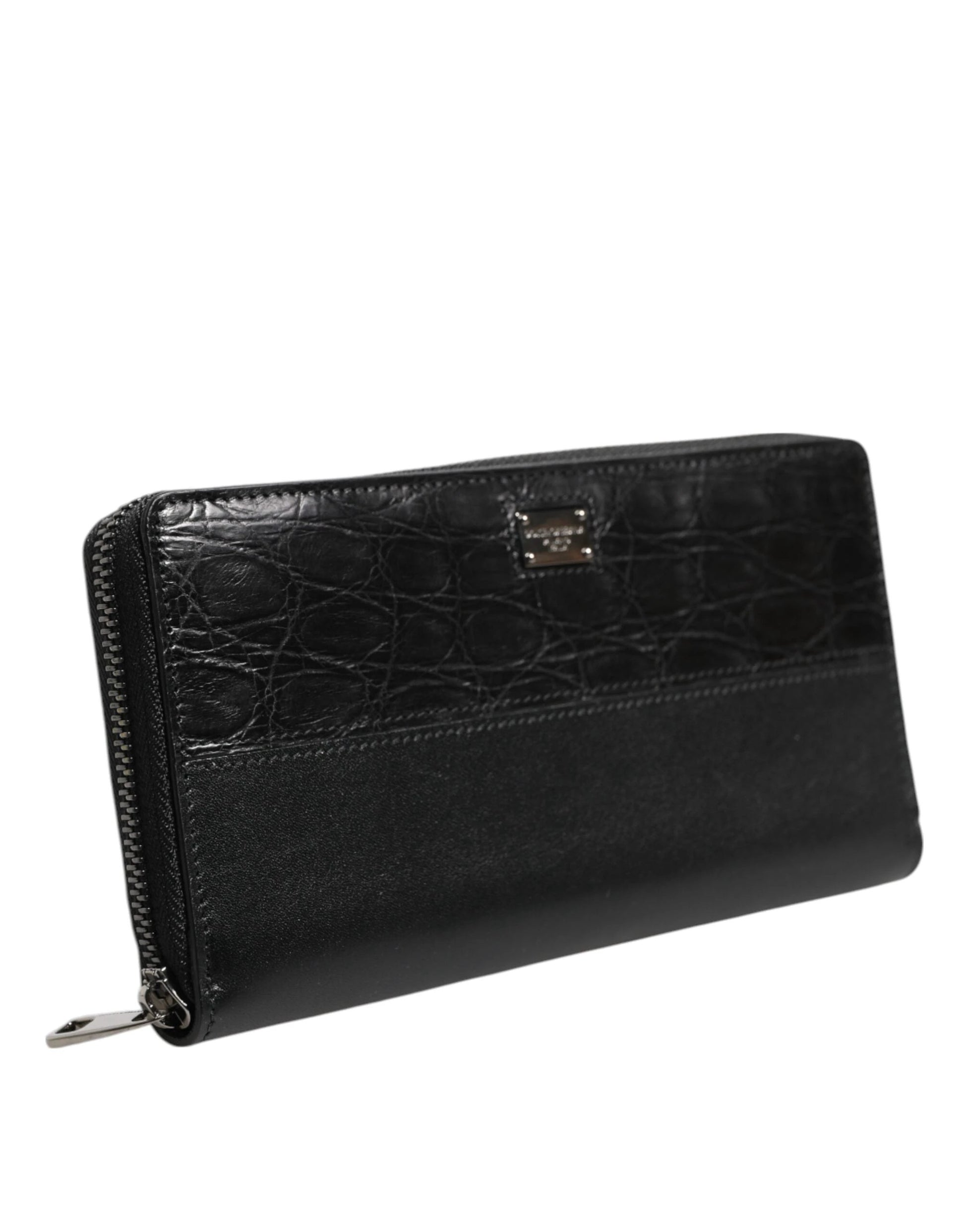 Dolce & Gabbana Black Leather Logo Plaque Zip Around Continental Wallet