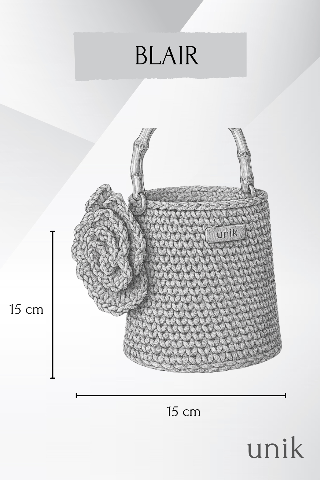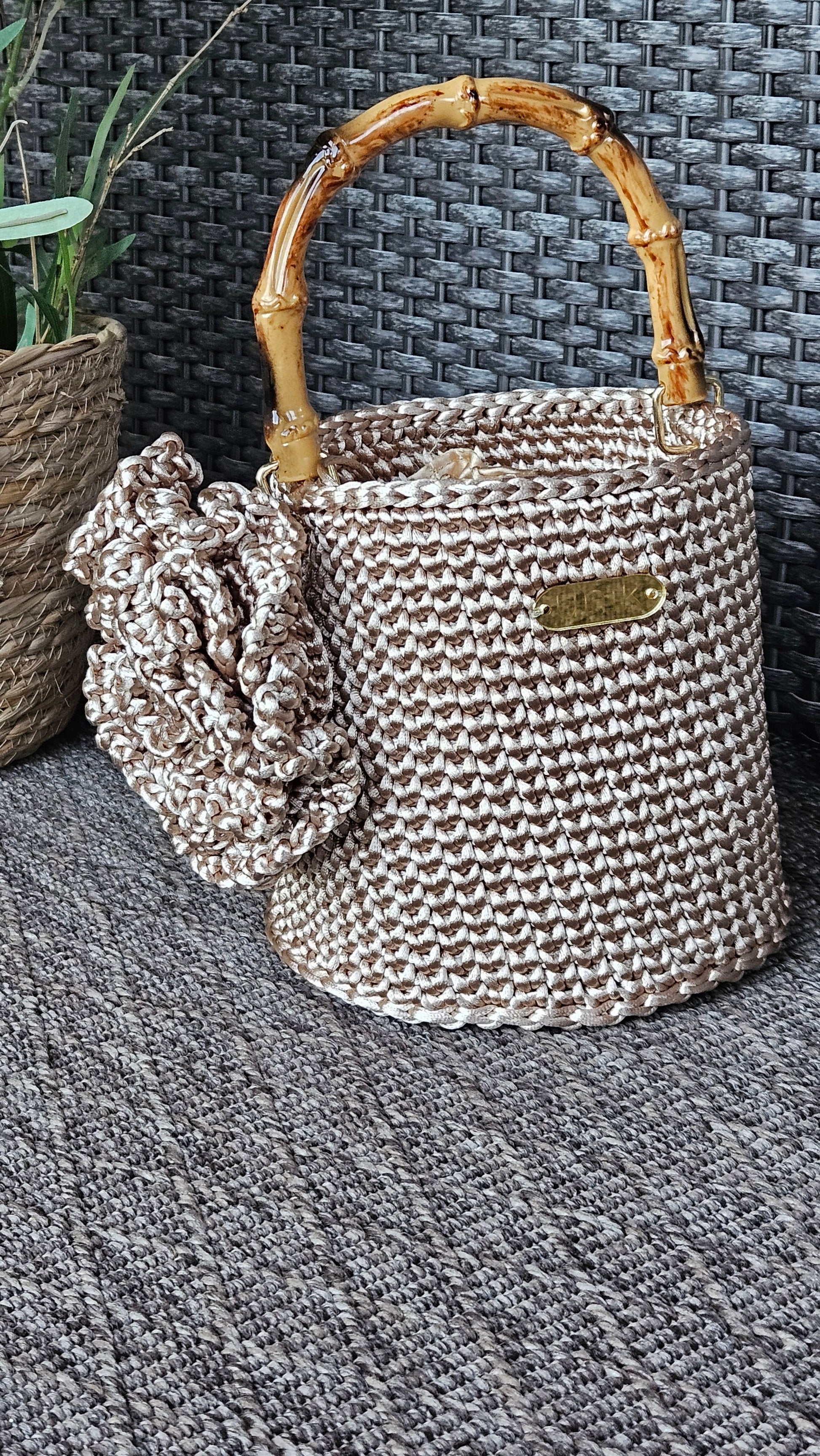 Bolso de ganxet amb forma de con, teixit a mà amb fil satinat i un disseny pensat per destacar per la seva elegància i originalitat. La seva estructura còmoda i lleugera el converteix en l’accessori ideal.