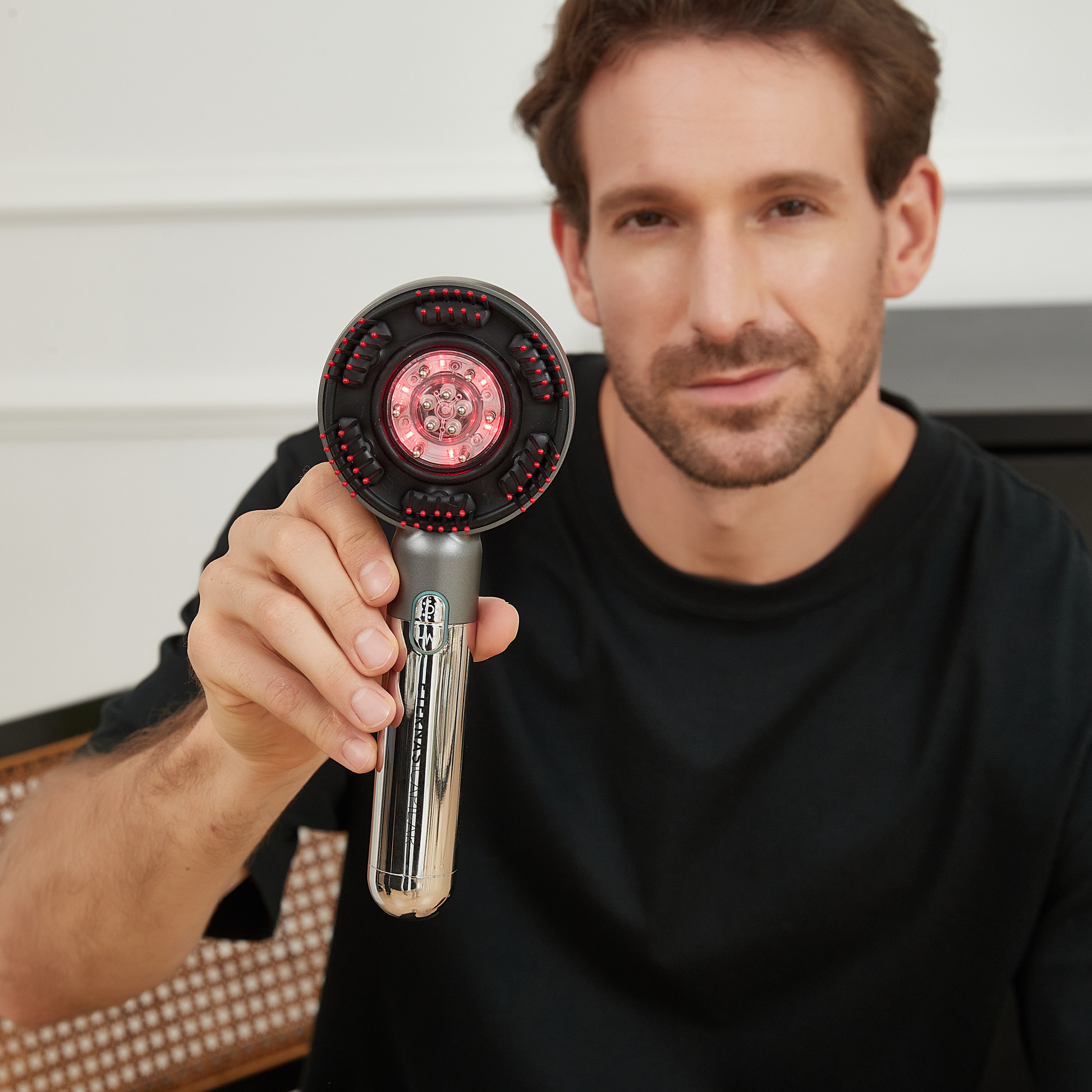 Grâce à sa technologie de lumière LED et à son massage EMS, le peigne active la régénération cellulaire du cuir chevelu, favorisant une croissance plus forte et plus saine et luttant efficacement contre l'amincissement des cheveux.