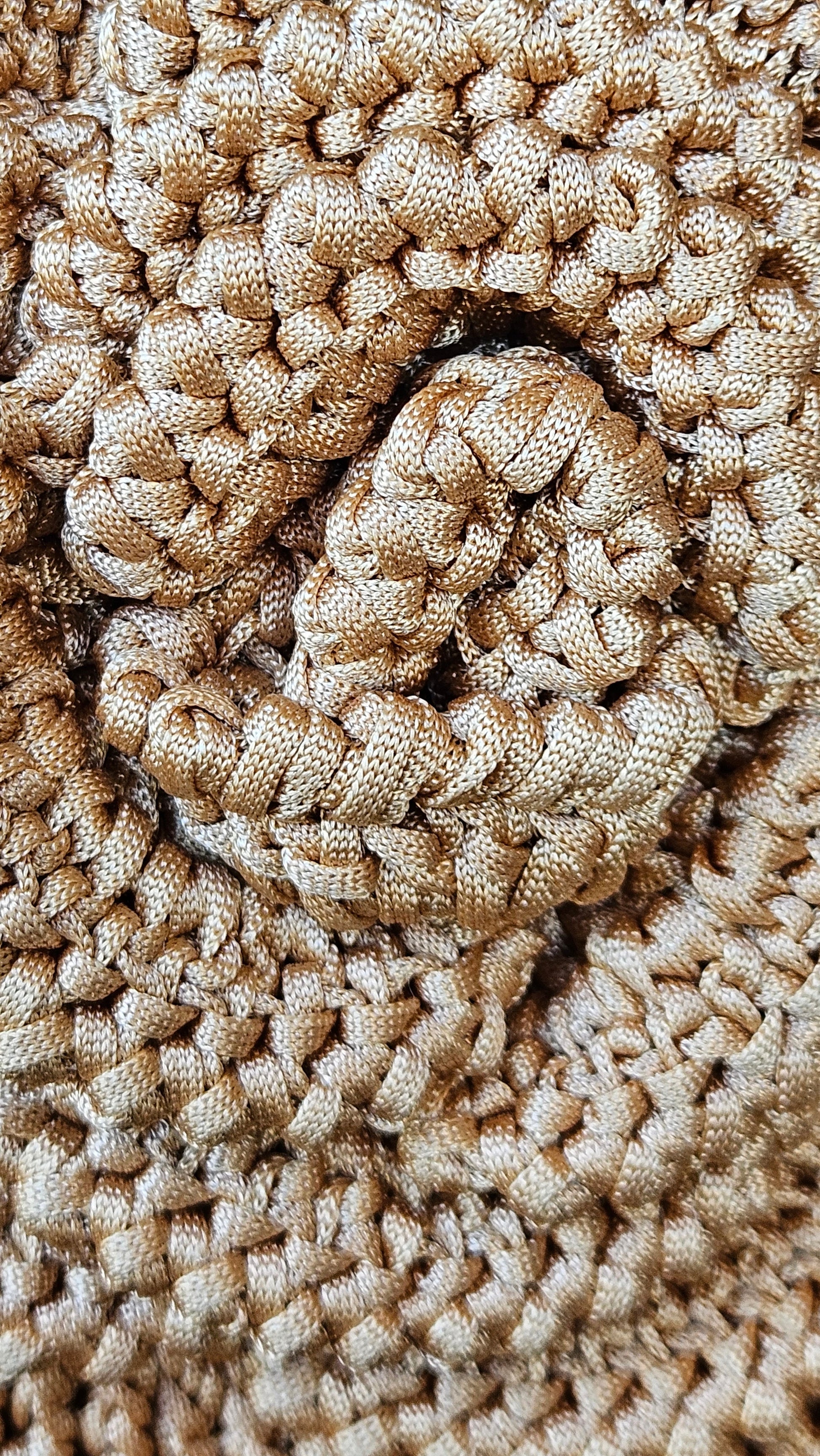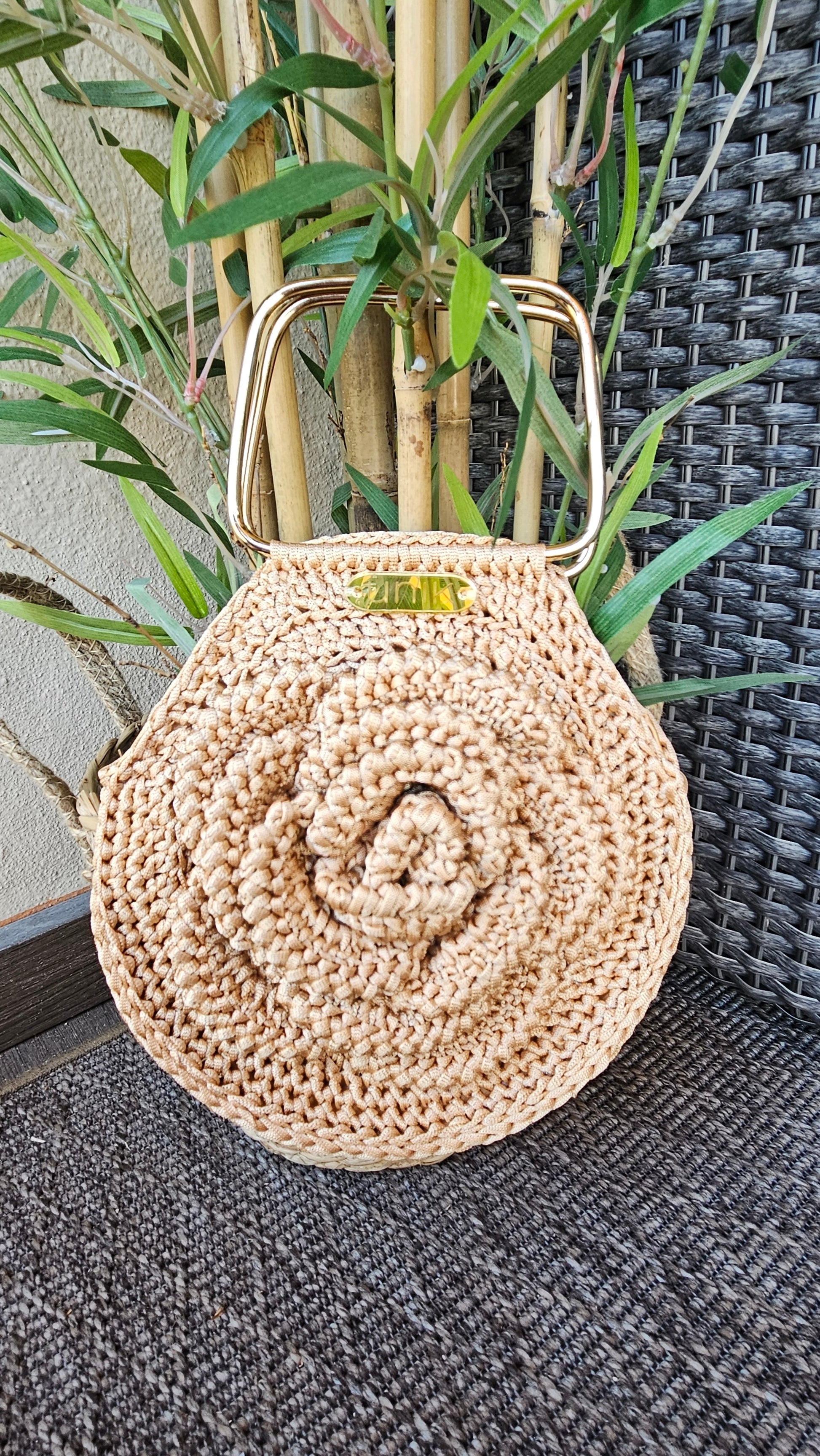 Preciós bolso de ganxet amb forma de flor, fet a mà amb una gran atenció al detall, que destaca por la seva textura i el seu disseny únic.