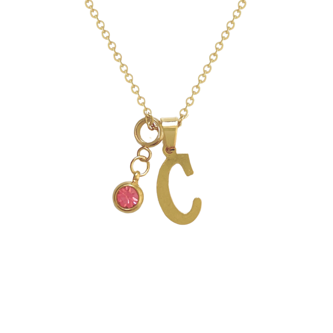 - Personaliza tu collar: Inicial Ella + Colgante con piedra natal en circonita de color.